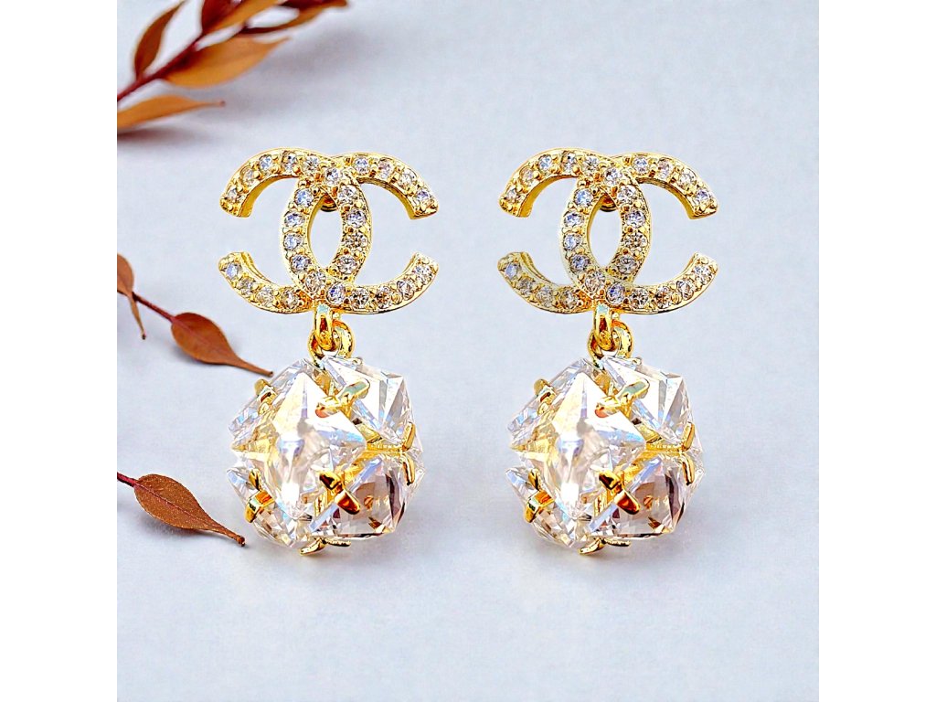 Náušnice CC s jemnými krystaly v logu a nádhernou krystalovou perlou. Voděodolné, hypoalergenní, s tyčkou z pravého stříbra Ag 925. Luxusní detail pro každý den. ✨