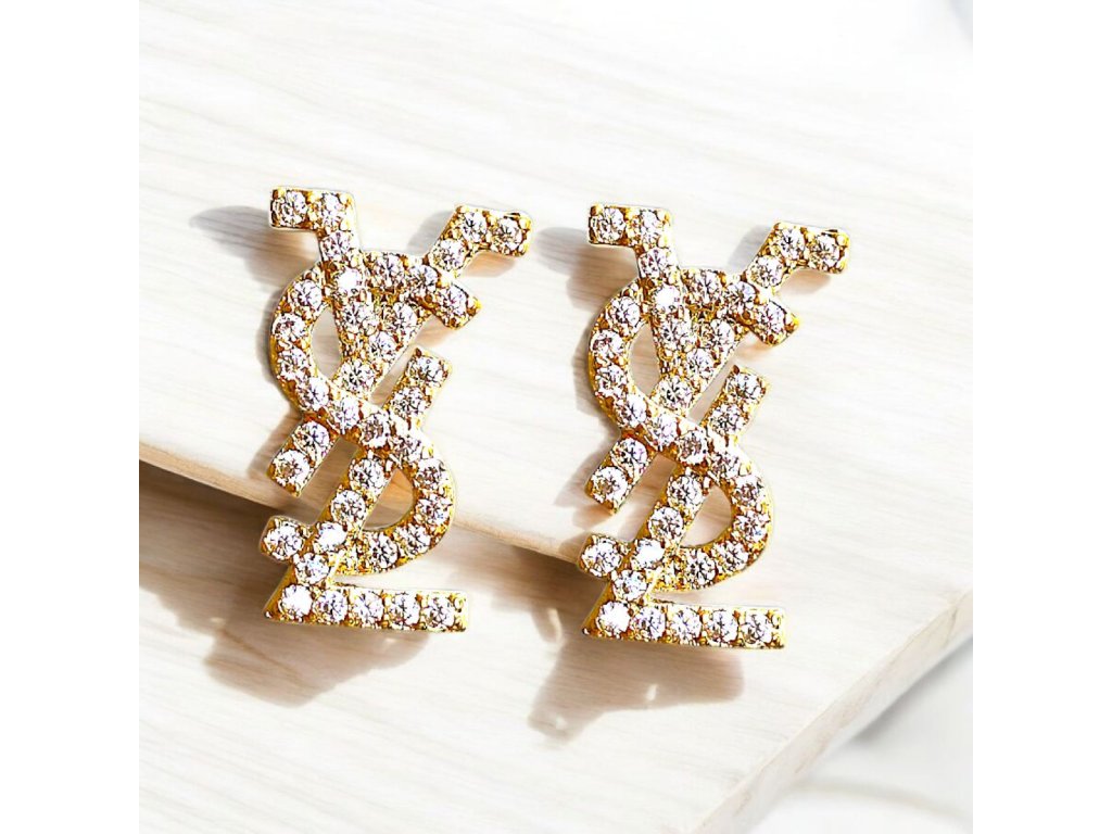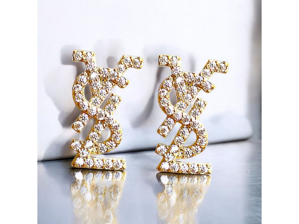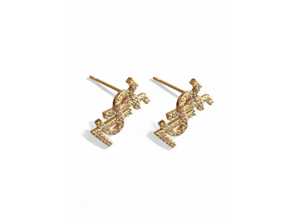 Zlaté náušnice s rozměrem-délka 1,4 cm, doplněné o krystalové detaily.Elegantní kousek s detailním logem, ideální pro každodenní nošení nebo speciální příležitosti.